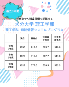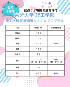 想定されうる志望(大分大学の内外問わず)で必要になる科目まで見据えた分析と戦略が必要になります。