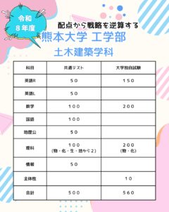 そんな熊本大学 工学部 土木建築学科を志望している方はぜひお問い合わせください!