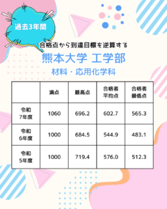 そんな熊本大学 工学部 材料・応用化学科を志望している方はぜひお問い合わせください!