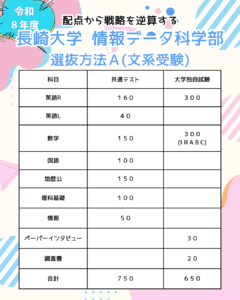 長崎大学 情報データ科学部 選抜方法A。