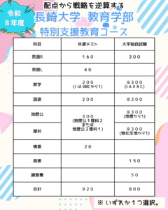 幼児教育コース同様、面接の配点が長崎大入試最高の150点。