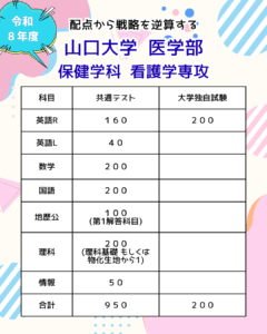 そんな山口大学 医学部 保健学科 看護学専攻を志望している方はぜひお問い合わせください!