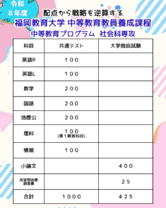 福岡教育大学 中等教育教員養成課程 中等教育プログラム 社会科専攻。
