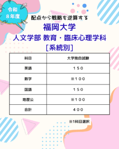 福岡大学 人文学部 教育・臨床心理学科 系統別入試。