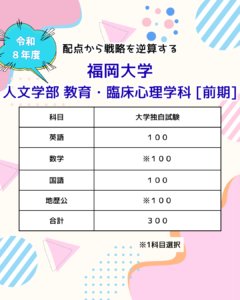福岡大学 人文学部 教育・臨床心理学科 前期入試。