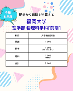 物理科学科の前期入試は、全科目100点の入試と物理重視入試の2パターンがあります。