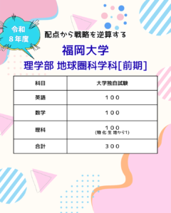 福岡大学 理学部 地球圏科学科 前期入試。