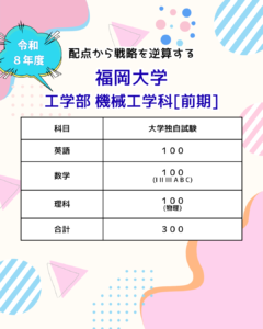福岡大学 工学部 機械工学科 前期入試。